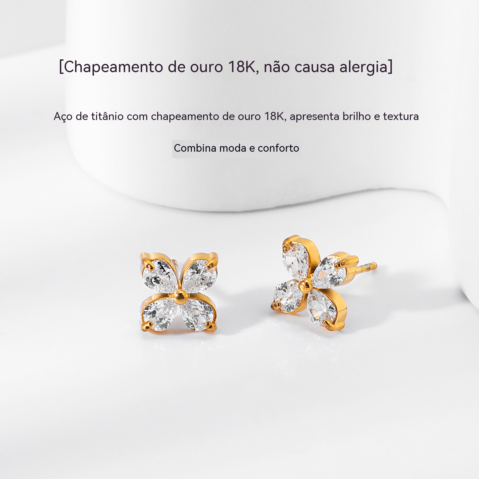 - Design de flor com zircônia: A flor de quatro pétalas cravejada de zircônias brilhantes, com corte nítido e brilho intenso. Parece um pedacinho de luz da primavera no seu corpo, trazendo delicadeza e movimento ao visual.