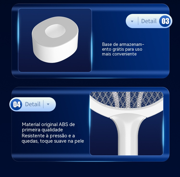 🌟 Benefícios Adicionais - Fácil de limpar: basta passar um pano úmido na grade para remover os insetos mortos. - Design moderno e elegante, combina com qualquer decoração da sua casa. - Economiza energia: carregamento rápido e baixo consumo de energia na luz LED.