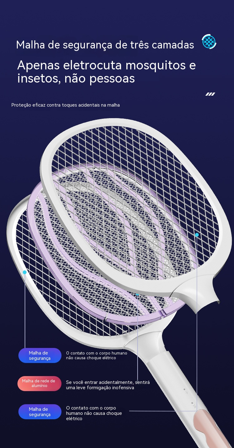 Deixe sua casa livre de mosquitos e insonnias com a raquete anti-mosquito 2 em 1 — praticidade, eficácia e segurança em um único produto! 🦟❌💤