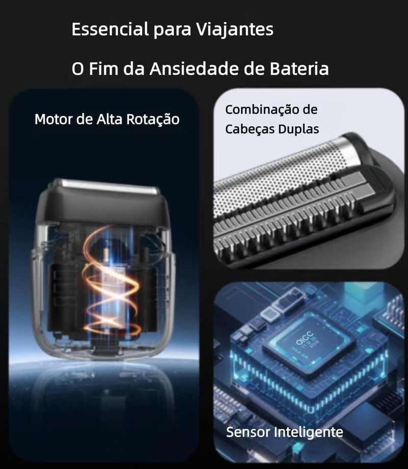 Este barbeiro elétrico alternativo foi especialmente desenvolvido para o homem moderno 🧔,perfeito para uso no carro, em casa, em viagens e no dia a dia.