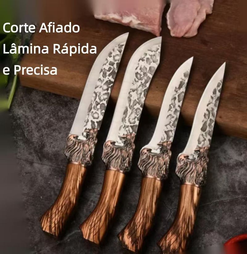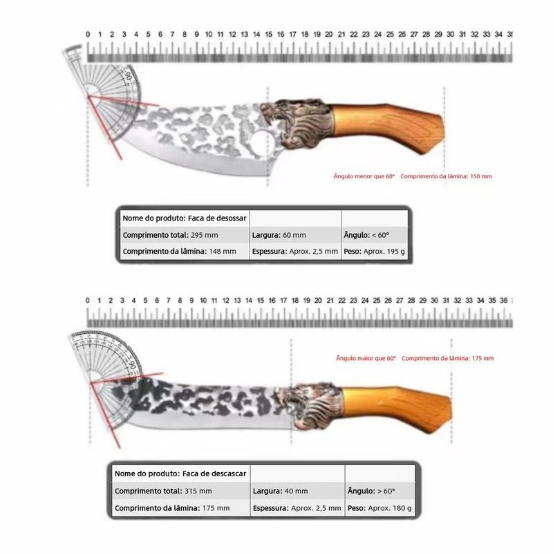 As facas são produzidas com a tradicional tecnologia de forja manual, passando por processos repetidos de forja, temperagem e polimento. A lâmina, de textura dura, possui alta dureza e resistência, mantendo a afiagem por longo período, sem quebrar ou embaiar facilmente. Facilita a divisão de carnes e a remoção de ossos, inclusive ossos duros de porco ou boi, elevando significativamente a eficiência do trabalho.