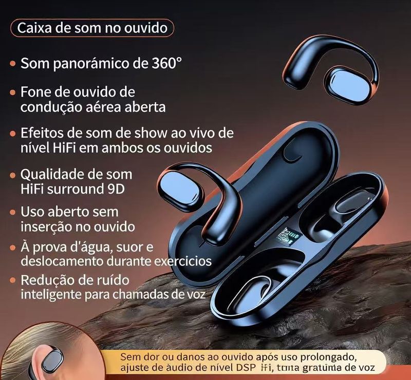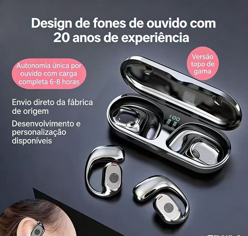 Redução de ruído, condutividade óssea, duração ultra-longa, função de chamada, controle de voz, suporte para música, tela digital, esportes com baixa latência