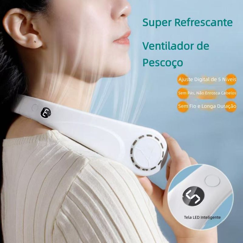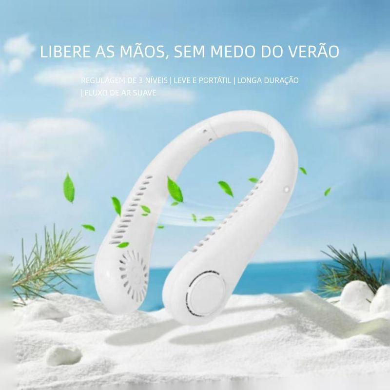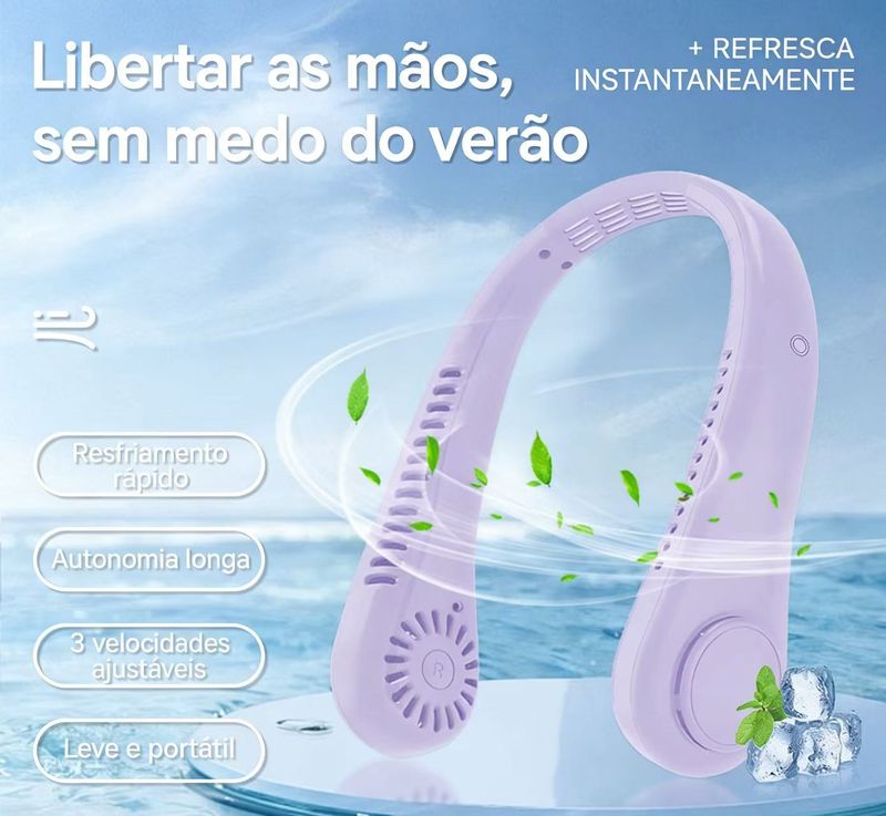 Leve e portátil, de pescoço, liberta as mãos, refrescante em viagens, deslocamentos e desportos.