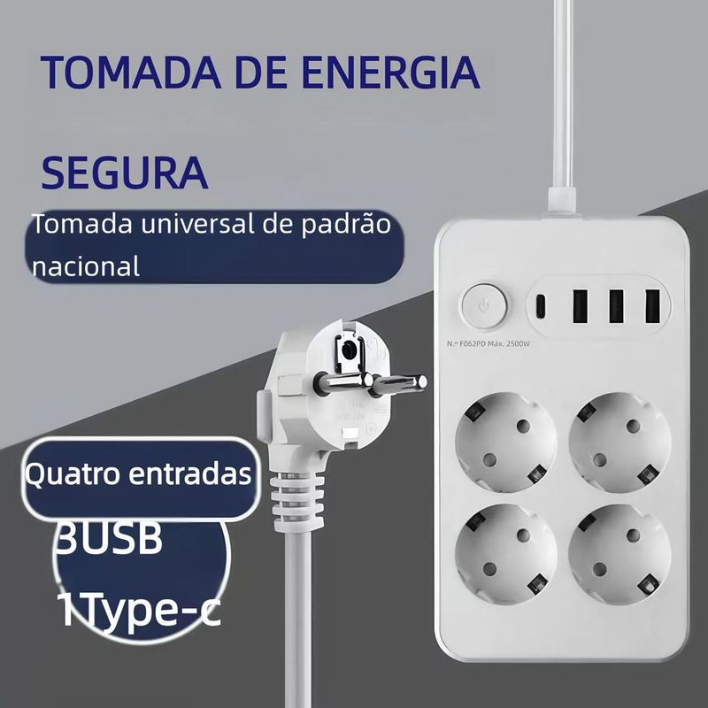 Tomada Inteligente Extensão Elétrica Padrão Europeu ⚡Esta tomada inteligente foi pensada especialmente para o uso em Angola, com padrão europeu que se adapta perfeitamente à nossa rede elétrica 🔌.